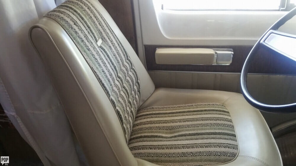 The interior is fully decked out in period garb for a motorhome made in 1977, and that’s a wonderful thing. The owners haven’t changed it but they have taken great care to preserve it. The description notes it easily sleeps four adults, and there’s also a full shower, tub, two skylights, toilet, bathroom sink, and a privacy divider/ door. The full kitchen includes two sinks, an oven with four-burner range / hood, and a refrigerator. The cabinetry has been refinished, along with the carper that has been recently replaced. The front seats are leather buckets in great shape, and the air conditioning and central heat work as well.