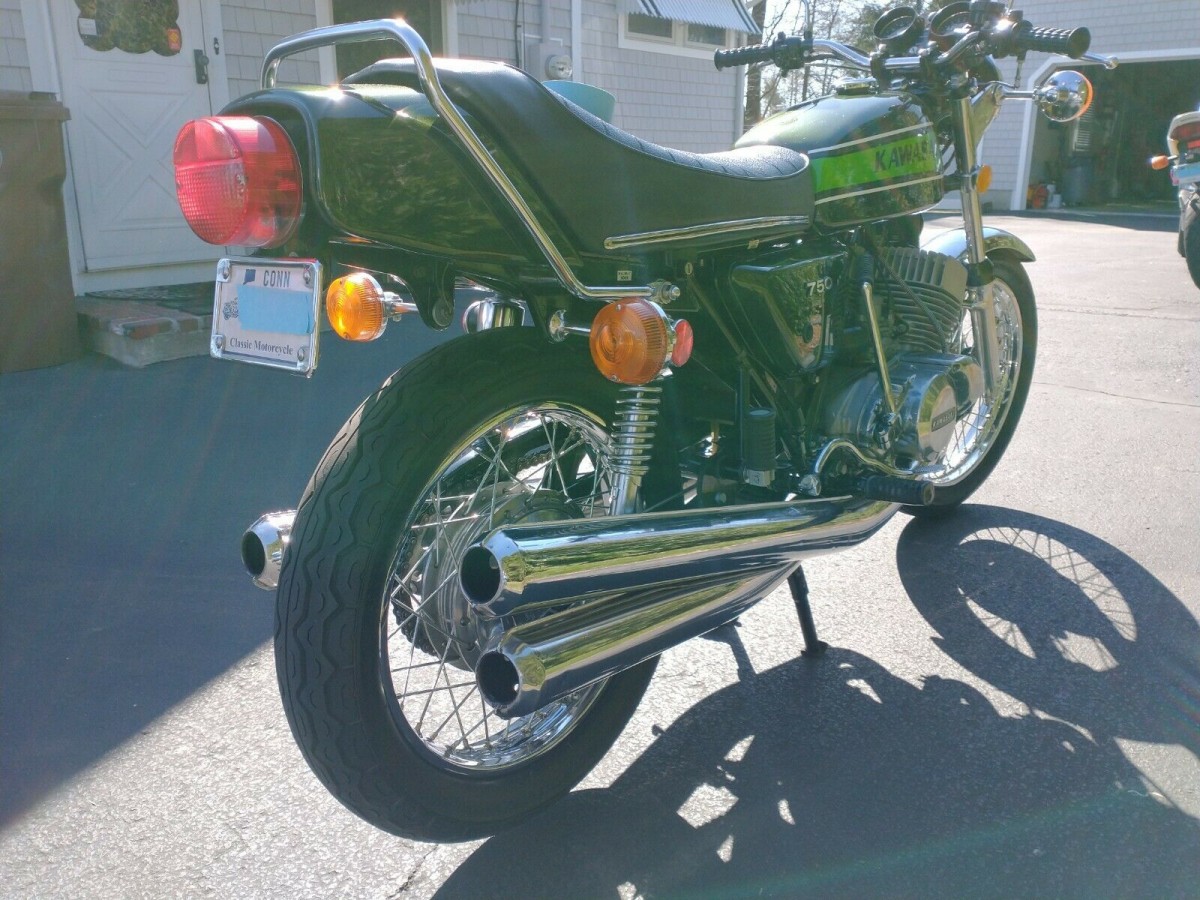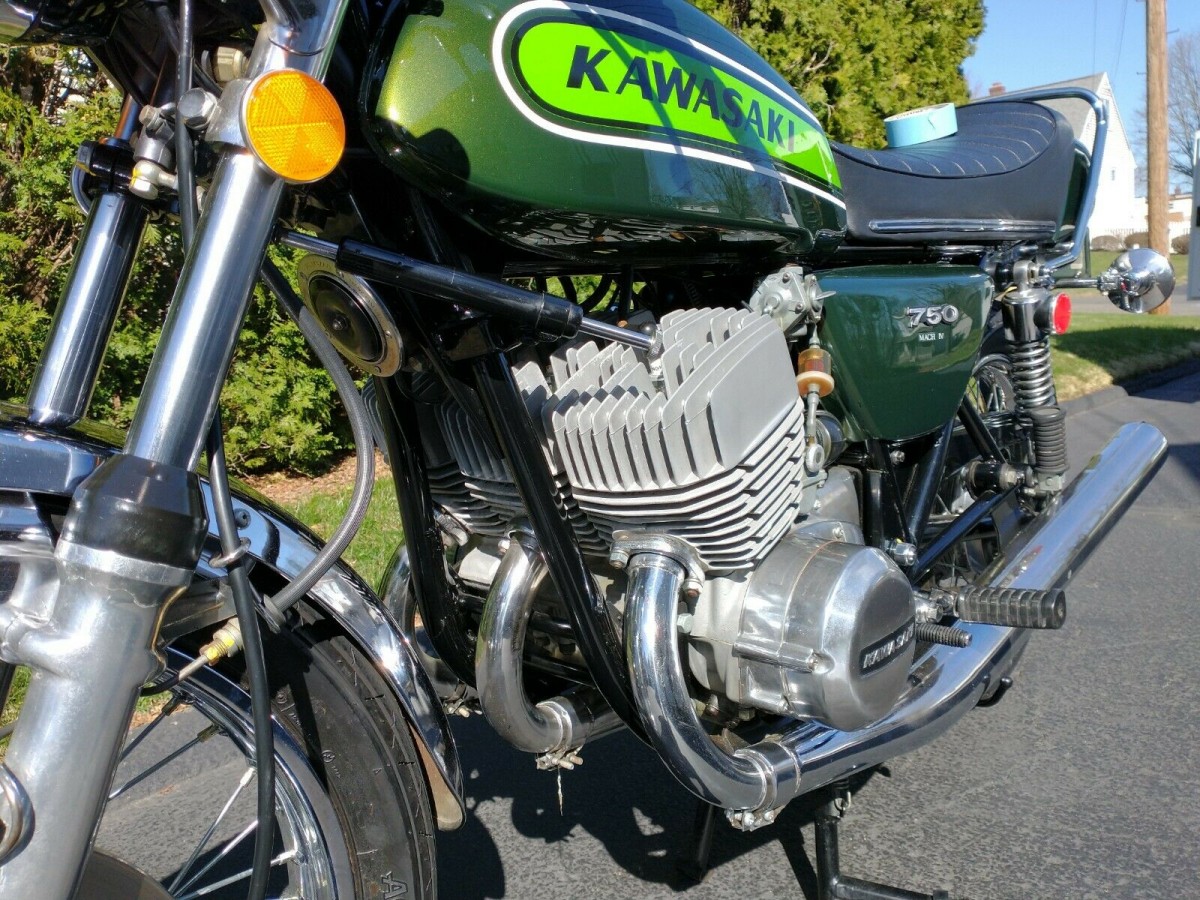 Boy, for all the negative comments I got from riding my Kawi triples from brain head Harley owners over the years, there sure is plenty of interest in this great motorcycle. The comment here about starting these rocket ships is dead on correct. I have owned five Kawi triples since 1975. Bought a new H1 that year in blue. Turn key one, hold choke, one kick. No stupid starter to break like it does on every Harley. Let smooth clutch out and ride. I rode my triples thousands of miles, never a break down. I sold my last H1, a brown 75 a few years ago for $5,000. Should have waited. It had 7,000 miles. I paid $1,500 for it in 1999 from a Philadelphia guy who had about 20 of them. I am now 65 and a bit friend of plowing into a deer up here in the Poconos, so I am done riding them, but the sound is better than anything else you have ever experienced. Would love to buy this one. These days, I cruise in my old Corvette.