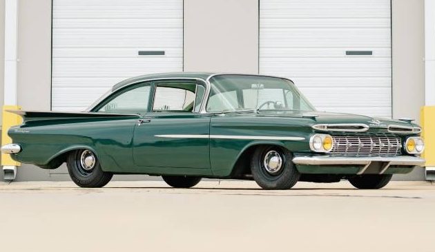I don’t think it’s an exaggeration to say that 1959 was the year in which American automotive design once-and-for-all reached its outer limits. Rocket shapes and motifs, fins as tall as the roof, grilles as intricate as an IKEA side table missing its assembly instructions…Taillights that resemble a woman’s cat’s eye glasses? Why not! That good old-fashioned American can-do spirit might not have always resulted in the most tasteful creations, but a lot of us love them. Of all the rolling kitsch to find its way to the showrooms of our small towns and big cities in 1959, my favorite is the humble 1959 Chevy Biscayne two-door sedan. Its lack of trim contradicts its major forms, but the more substantial-looking greenhouse (compared to the hardtops) balances some of the bulk of the lower body; to me, the proportions are more pleasing. Barn Finds reader Rocco B. found this mildly customized Biscayne on craigslist in Frisco, Texas, with an asking price of $34,500.