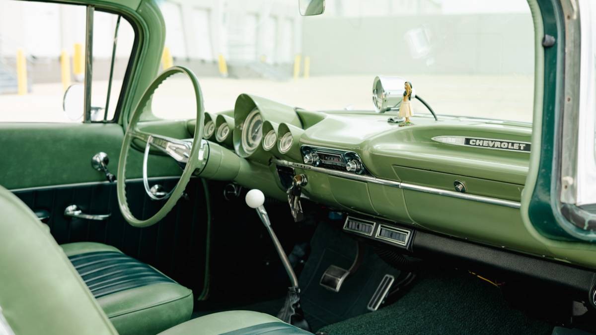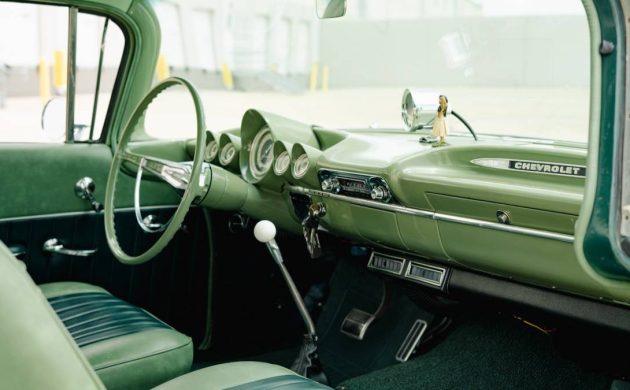 Yep – back in that day, the weight of cars were tough on the suspensions, and the way this ’59 Chevy’s tires are almost at the top of wheel wells, that was a sign of the car being driven too much over rough pot-holed filled roads – wreaking havoc on the suspension. So, making it look that way intentionally makes it look worn out, which is just ridiculous to someone who grew up with them. If I bought it, the very first thing would be to put the proper suspension back under it to restore it to what it looked like coming off the showroom floor.