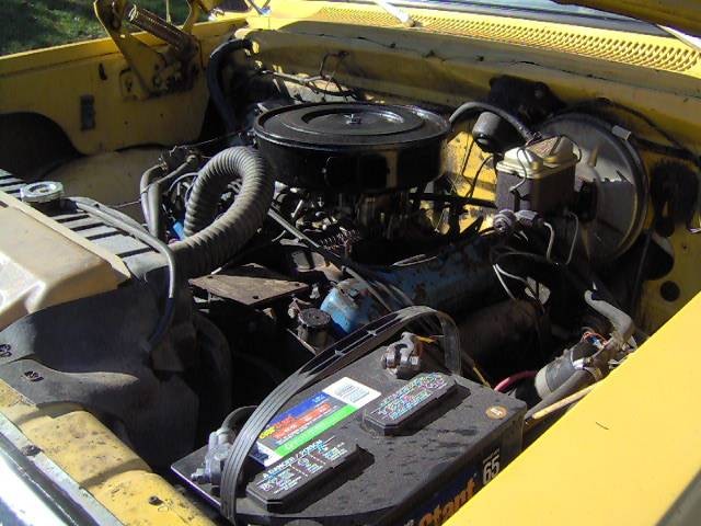 The interior bring more good news, with an un-torn bench seat, un-cracked dash, and preferred manual transmission. The seller notes it comes with a factory big block paired to a 4-speed manual, which is a tasty combination. Looking at the continuation of the yellow color scheme into the door panels and matching paint inside the door jambs seems to provide more evidence that the Dodge left the factory looking the same way it does now – just shinier.