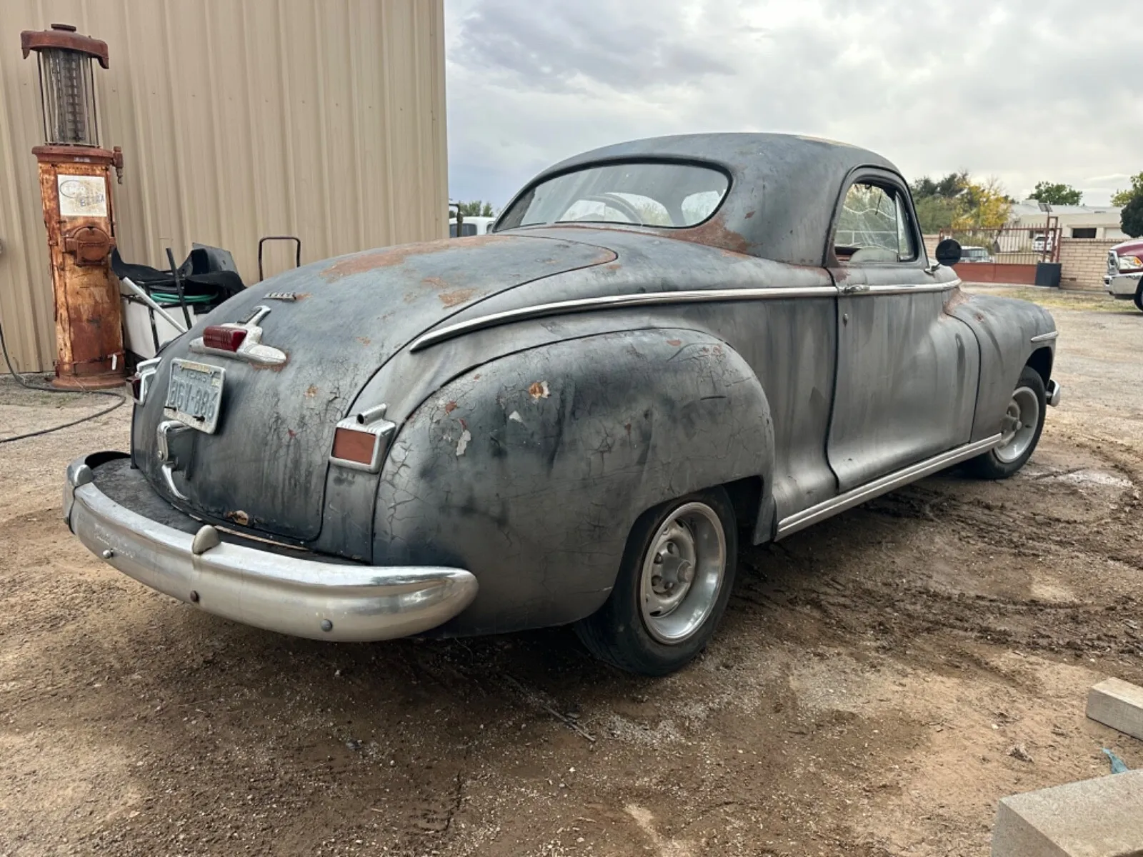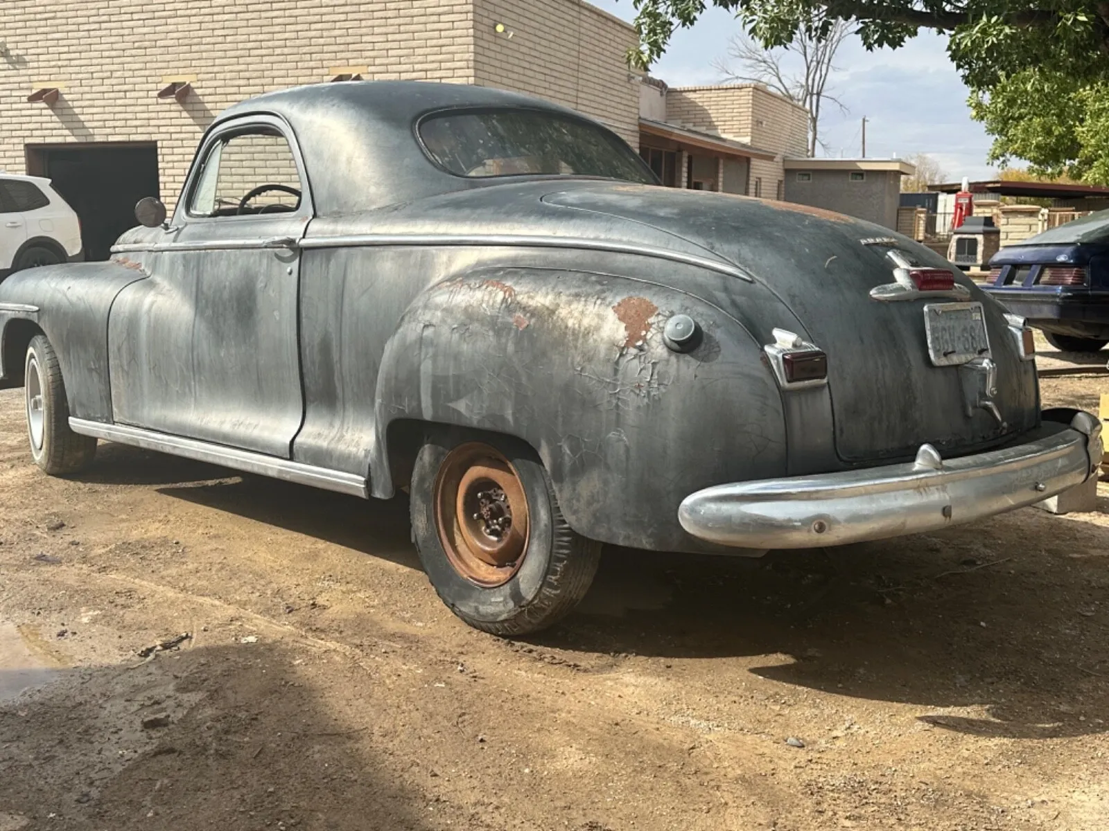 There was 2dr light blue 49 Coronet parked in the back lot I worked at.I believe it back seat and the rear side windows.Never drove it, just start it once a week.I still have the never used big chrome nobbed cigarette lighter from it.This 46 business coupe looks like a good solid project.How many survived?