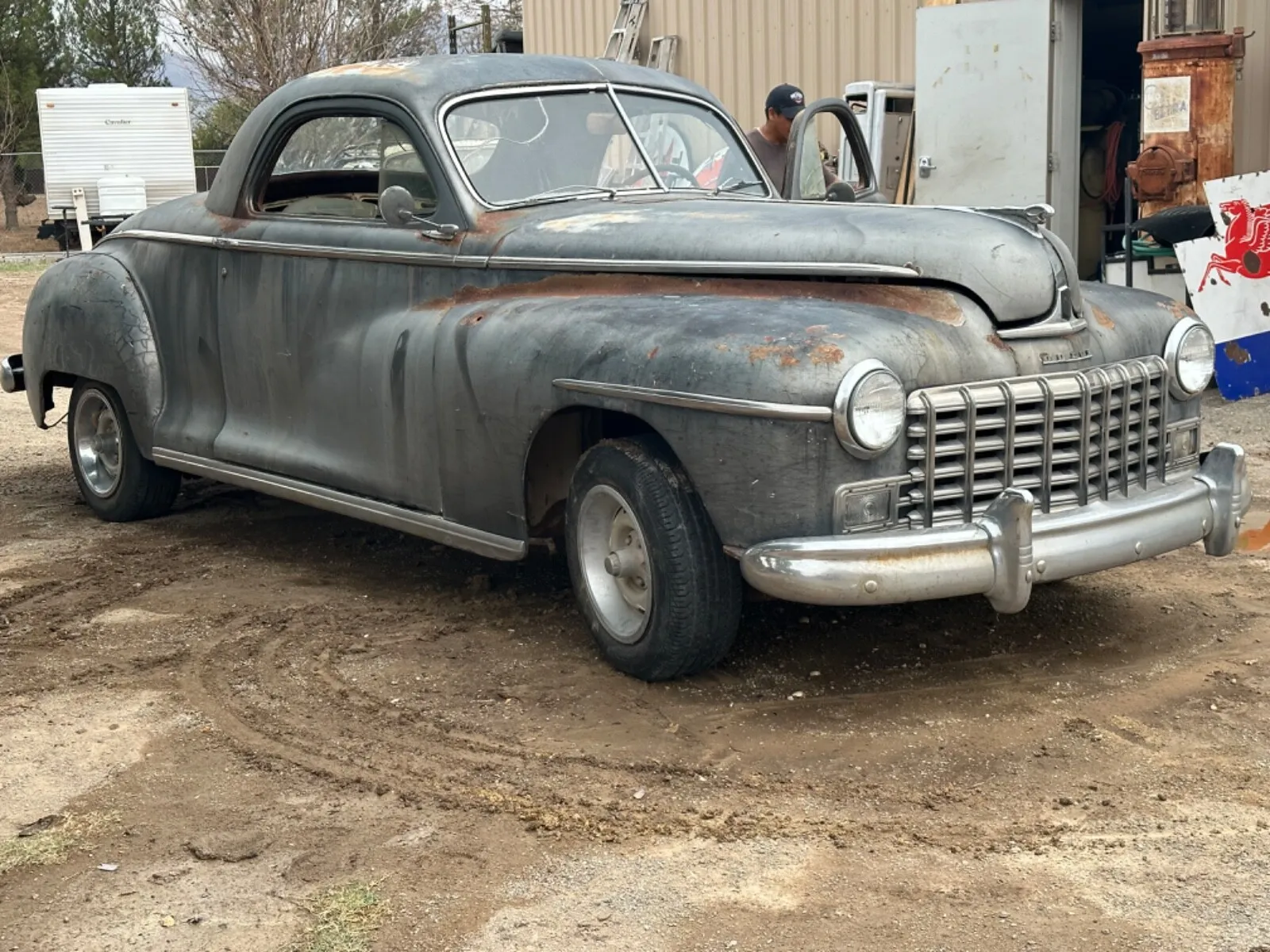 If you like the profile of one seat business coupes, these are the bomb. They and Studebaker had the most exaggerated profiles. I personally love them. This one looks a good candidate and they look even better with some dressier wheels. Kind of like the attraction of long, black old Cadillacs. They also had a little bit of Italian look to them with the harmonica grills.