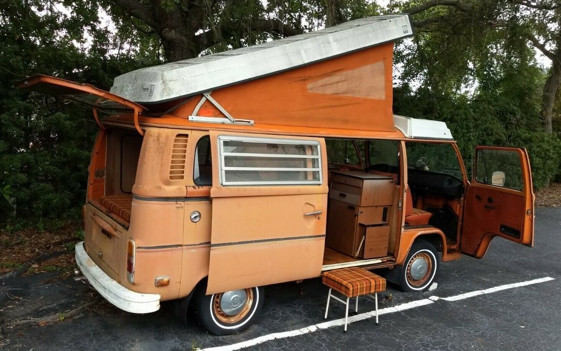 The Westfalia Camper was a conversion of the Volkswagen Type 2 (aka Vanagon) built in the back half of the 20th Century. Westfalia was the subcontractor that Volkswagen used for many of these transformations. This 1974 edition has an interesting history, where it spent time with its first owner in Europe before coming to the States. Located in Clearwater, Florida, it’s not in running condition but is available here on eBay where the bidding has reached $10,300.