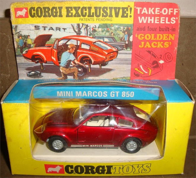 I still have my Corgi Mini Marcos, which was pretty well played with , but had a habit of catching the “golden Jacks” on the carpet, so it got “auto crossed” outside more than inside…..