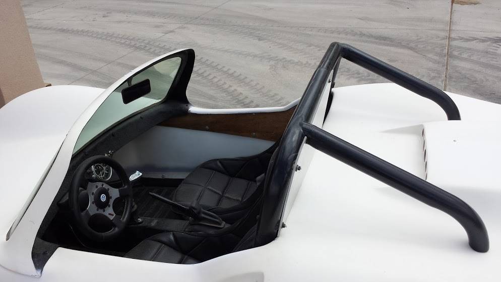 Needless to say, with what looks like one gauge and dune buggy plastic seats, the interior is pretty sparce. I’m not fond of an un-padded roll bar that close to my noggin either. However, it is certainly clean and simple, and a future owner could add in whatever they wanted to.