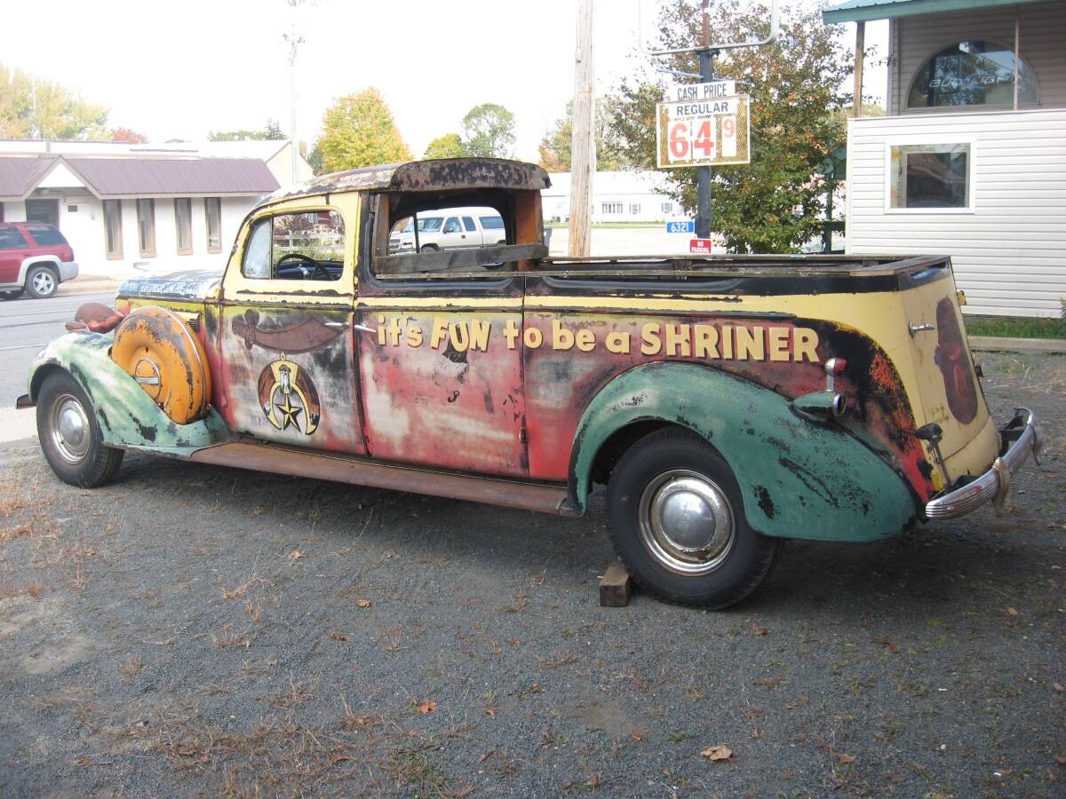 Shriners always had representatives in our local parades… with Many, Many different types and shapes of Vehicles, even tiny cars circling the big vehicles. Those tiny ones must have been built on go-cart frames, but they had very elaborate and ornate bodies on them. What I always wanted to know was, how in the world did they store all those “units”… they were always clean and shiny… someone had to have had a BIG garage to house those “parade” vehicles. Hate to see this one no longer in it’s prime.