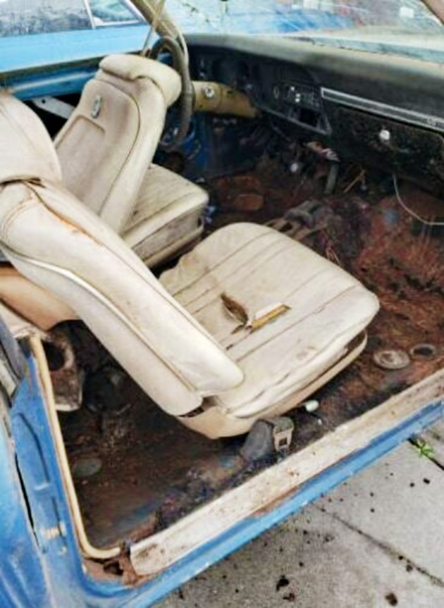 The seller doesn’t give any full views of the car, but they at least offer lots of up close photos of the rust issues. And boy, is it rusty. It isn’t beyond saving, but it’s close, especially when you take into account the missing components and title situation. It will be really hard to justify restoring it, but perhaps there’s some hope for it. If you really like to punish yourself and happen to have a 396 V8 sitting around, than it might be worth restoring.