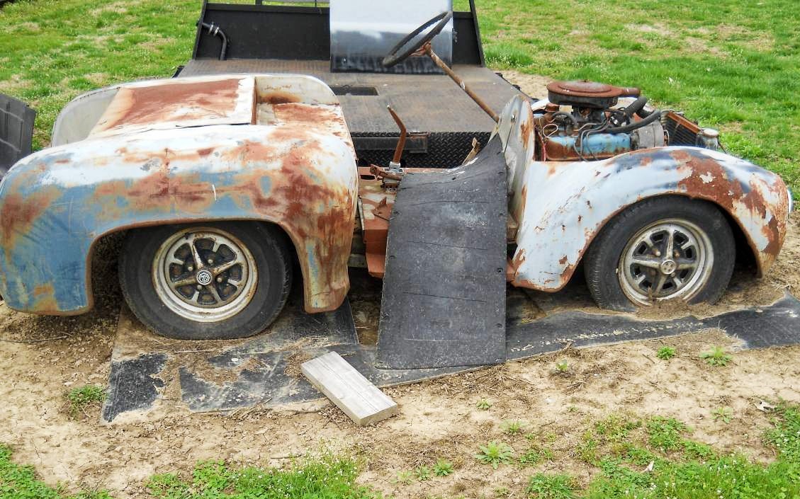 I do have to give the builder credit for creativity! They managed to merge several vehicles into something that sort of works. I can’t imagine how much welding and fabrication that went into putting it together. The seller doesn’t state whether they built it or bought it like this. If they built it, it would be interesting to know what all it took to build it. The wheels appear to be from an MGB, so if the donor car was a B, it seems like they must have shortened the frame. This thing is crazy and seems like a whole lot of really bad ideas merged into one, but I’m sure it will be one heck of a thrill to drive! So, would you try to get this thing going again or should it just be sent to the crusher?