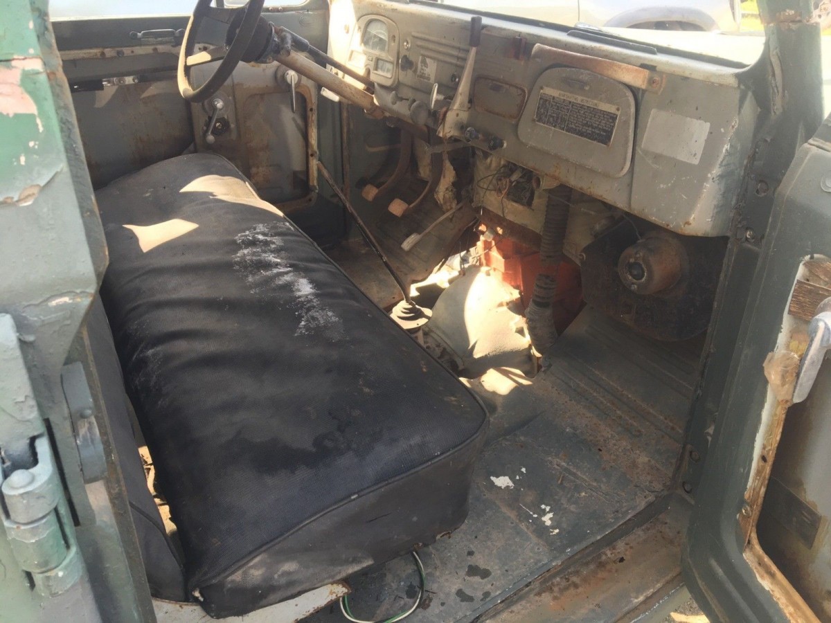 The engine is a “Chevy” bolted to a 3-speed transmission and Toyota transfer case. Unfortunately, the engine is not bolted in place, so don’t count on it being ready to run any time soon. The body is said to be fairly straight and clean with minimal rust. There is no title included in the sale. This may turn off some bidders depending on how hard it is to obtain a replacement title in their area.