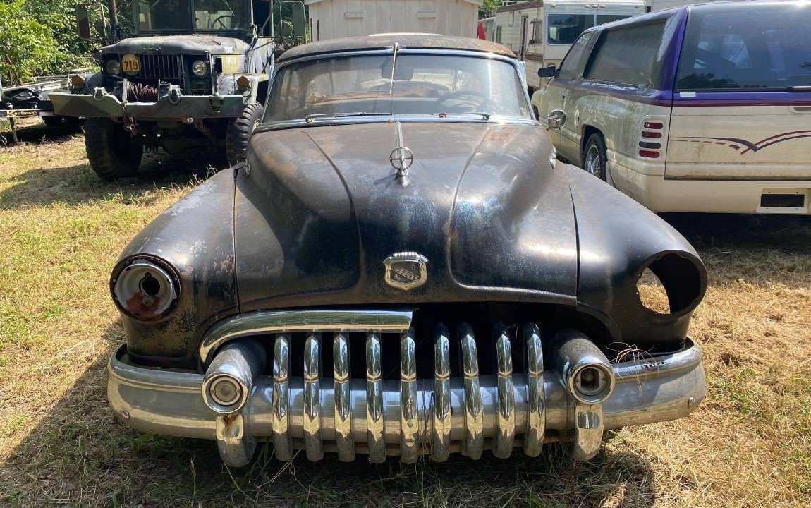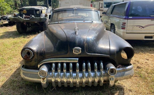 For me it’s the grill. The toothy maw is almost a ‘50 Buick exclusive challenged only by the ‘50 DeSoto. If a Buick aficionado has or can source the missing front trim; the hardest task might be covered. Brakes and fuel system isn’t a deal breaker. Finish off with a Derek Bieri restoration and go cruising with “Dynaslush”. GLWTS.