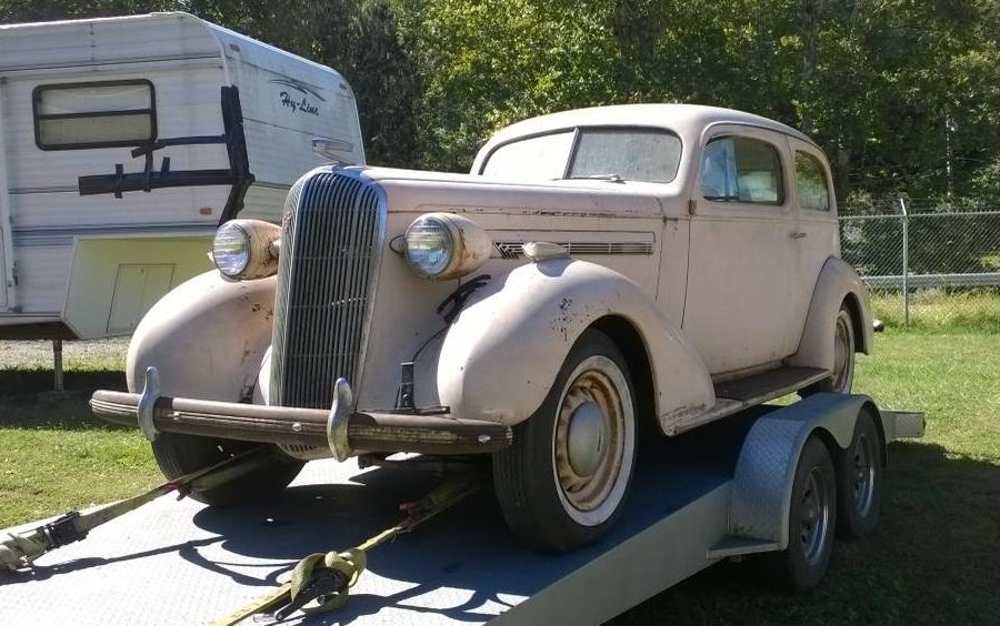 Here’s a sad sight. It’s yet another old car on a flipper’s trailer. It’s amazing that cars like these survive, sitting in a barn somewhere, forgotten. There were cars like these in barns in New Mexico covered in years of bird droppings. Between spare parts potential, rust, World War II scrap drives and hot rod potential this sedan survived. Perhaps this Buick was stored during World War II when gas was rationed. After the war, it was replaced with a new car. It needs at least a steering wheel and air cleaner to be complete and it doesn’t run. Other than the trunk lid there are not many signs of rust but it appears various creatures of field and stream have found it a comfortable home over the decades. You’ll find it listed on craigslist in Moundsville, West Virginia for $6,950. There’s no history provided but it appears to have been stored for a long time. It’s described as being of “Flesh tone color”. Many of you see potential here to create a custom car of some sort. Some of us would like to see it restored to its original form. I will have to admit my prejudice. I occasionally drive a similar car, a 1938 Buick, to events and also enjoy giving folks their first ride in an old car. It’s a new experience for them and it gives them an appreciation for old cars.