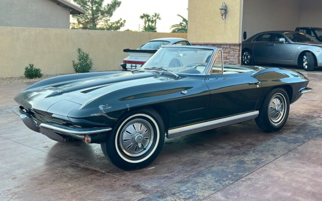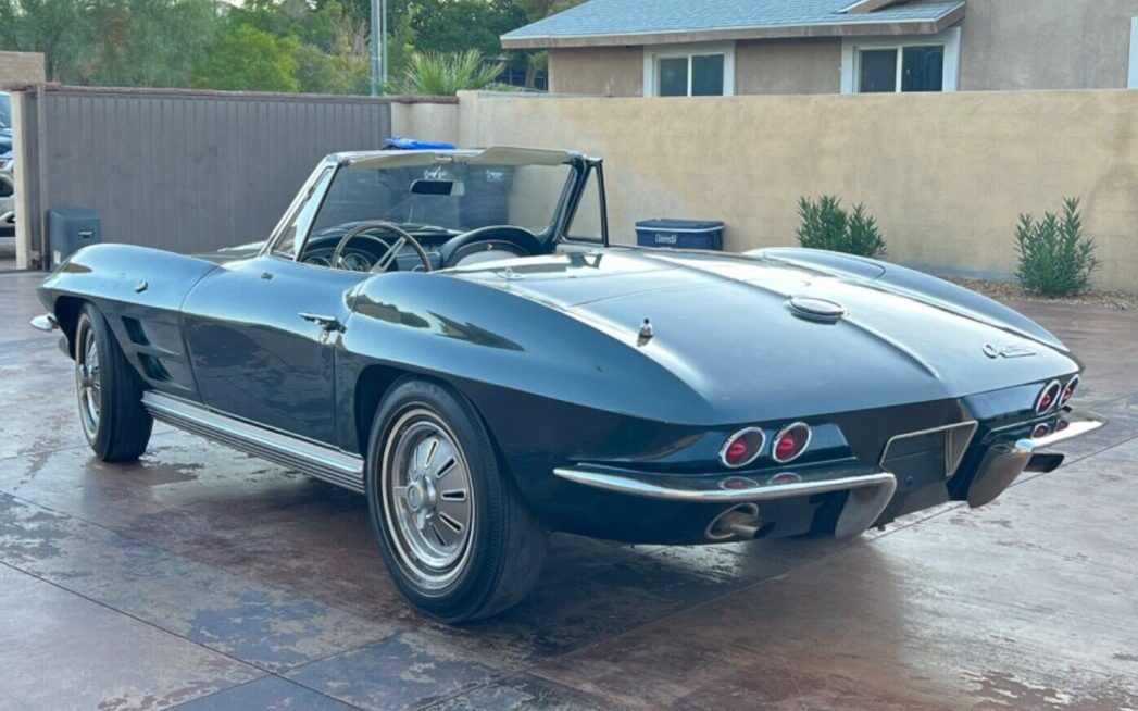 The story is that this Corvette was parked in 1980 after having undergone a black to green repaint in ’77 and an engine rebuild in ’78. We’re told, “Never been in any accidents… All the original bonding strips are still intact…Body is very nice and original does have some damage to the front driver fender…Birdcage is in great condition.” The noted fender damage looks more like a scrape than anything more serious. The seller refers to the original Tuxedo Black finish as being rare but Corvsport claims that 3,454 examples were so finished in ’64 – the third most popular shade and tied with Daytona Blue. Having both hard and soft tops, as is the case here, is certainly welcome. The finish clearly has issues but the car, all-in-all, looks sound and complete.