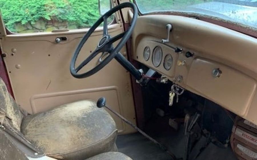 Speaking of running, this 203K mile specimen has a non-original engine in the form of a six-cylinder, in-line Chevy motor; as to its provenance, that’s not disclosed. The original power plant would have been an 85 HP, 216 CI six, and the center bolt valve cover on this newer engine is true to that original design. This truck is advertised as being in running condition, and if nothing else, certainly looks good. The listing states that an automatic transmission is in place but that’s probably an error. There is a clutch pedal present and the shifter looks like the one used to row a three-speed manual gearbox.