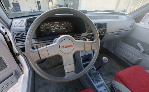 White and red were the only two colors available for these interesting little cars. They all came with full white wheel covers, no matter which of the two colors a buyer wanted. I can’t help to compare the Chevy Sprint Turbo with Suzuki’s other pocket rocket, the Alto Works RS/R. The Sprint was a Suzuki Cultus under the badging, but only came in front-wheel drive, unlike the Alto Works. This car has been repainted, according to the auction listing.