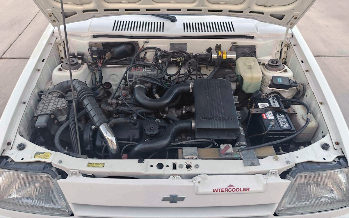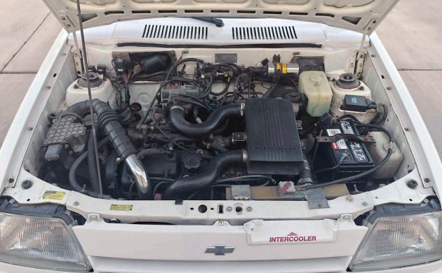 The clean engine compartment is where the Suzuki G10 1.0-liter SOHC inline-three lives, and it has 70 horsepower and 107 lb-ft of torque. Backed by a five-speed manual sending power to the front wheels, they say this car was restored in 2012 and has been with the current owner since 2011. Have any of you driven or owned a Chevy Sprint Turbo?