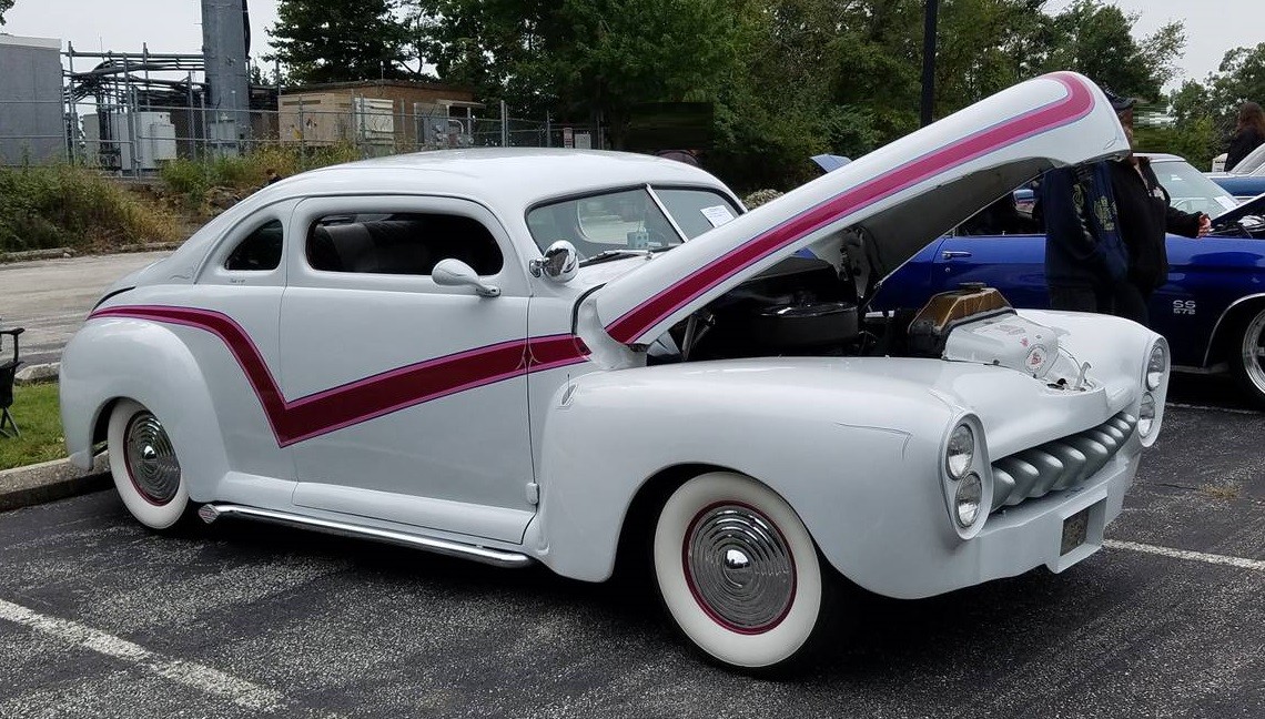 At first look, this beauty evokes memories of the ’50s and all the trappings that come along: Poodle skirts, Pompadour and Duck-Tail hairstyles, rolled-cuff jeans, Drive-Ins, and George-Barris-style custom cars. This car just happens to be available here on Craigslist in the Philadelphia Western suburbs, and it would cost a LOT more to build it today than the $22,000 asking price.