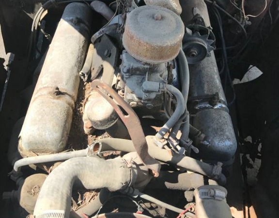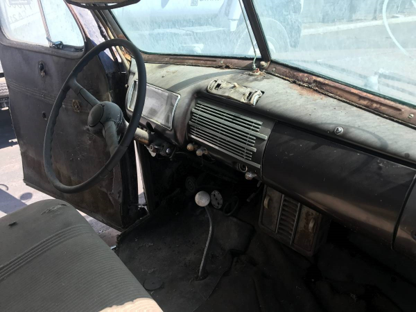 Under the hood is the most visible clue of the car’s hot rod past. The “Nailhead” Buick engine was a popular power plant to put in early hot rods. Built from 1953 to 1966, these engines could pack up to 425 cubic inches of displacement from the factory. Conversions such as this were made popular by a cottage industry of companies that made bell housing conversions to mate these engines up with almost any transmission you can dream of. These companies also made custom motor mounts that made an engine swap easier for the average joe working out of his one car garage. When I look at the picture of this engine, I don’t think the conversion ever got totally off the ground. It looks like the stock radiator is still in the car, and one of the hoses is just hanging in the air. The generator is lying on the valve cover, and some sort of cobbled up bracket is laying next to one of the carburetors. These engines are not as cheap to rebuild as a flathead Ford or a small block Chevrolet, conditions being equal, and it could probably be sold to another hot rodder if it isn’t frozen up.