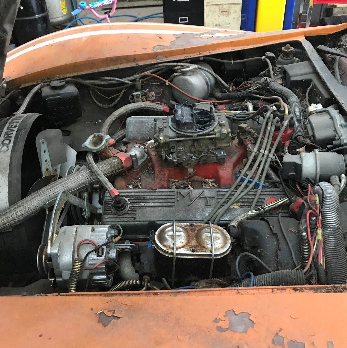 This poor Corvette has been bruised, beaten, and bondoed! Someone grafted a wide body kit onto it and painted the whole thing orange. Then they proceeded to lose the title… That’s a shame too because this is 4-speed car that was running not that long ago. The frame is claimed to be solid and there are a lot of good parts here. It’s located in Evansville, Indiana and is listed here on eBay with no reserve. Better hurry though because the bidding ends soon!
