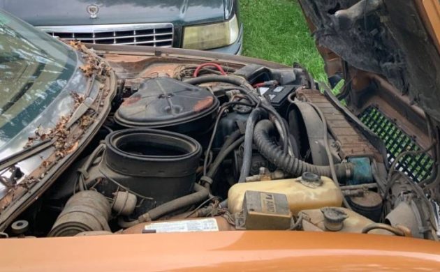 In place of the Wankel, here sits AMC’s 232 cu. in. in-line six, with its rearmost two cylinders snuggled under the cowl. Not only was it a tight fit, AMC should have put a four-cylinder in here to synch with the “economy car” theme, but it didn’t have one. The six got about 24 mpg in its 1975 iteration on the highway, not terrible for the time, but not great either. It was slow-ish, with zero to sixty coming up in more than 16 seconds. On the other hand, the car has front disc brakes, rack and pinion steering, and a unique-for-the-time approach to segregating the front suspension on a rubber-cushioned crossmember. The original buyer paid $307 in 1978 dollars to equip his car with a column-shift automatic. Unfortunately, this car has been stored outside, accumulating leaves and surface rust, but it does run and drive, riding on new tires!