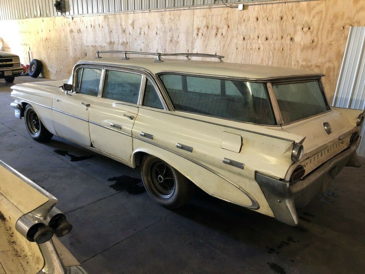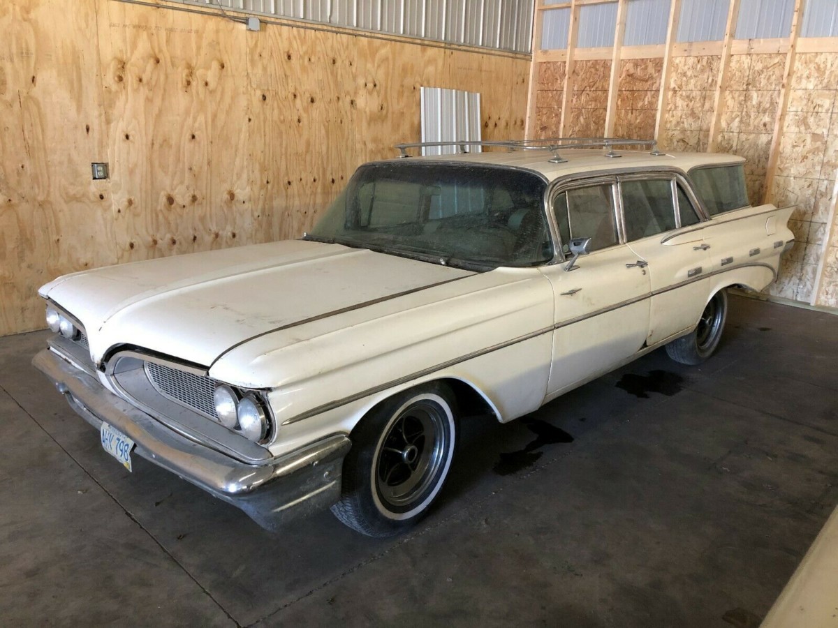 Pontiac went through what a stick-and-ball sports team would call a total upheaval for 1959. The new team leadership (think coaches and general managers) were Chuck Jordan, Bunkie Knudsen and Bill Mitchell, and they were all about changing Pontiac’s image to a more youthful, performance-oriented one. As Knudsen famously said, “You can sell an old man a young man’s car, but you can never sell a young man an old man’s car.” This 1959 Safari wagon reflects that new, “wide-track” styling and is listed for sale here on eBay. It’s located in Madison, Wisconsin and has a buy it now of $10,000, although bids are also welcomed and are up to $5,100 so far (reserve not met).