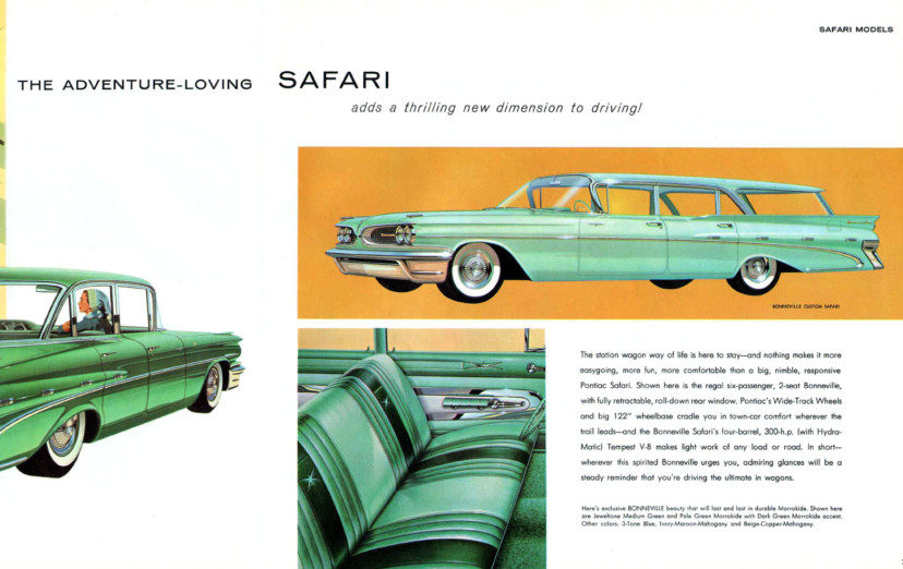 The Dad of a drummer in a band I was in, late 1959, bought him a new white Catalina wagon with green vinyl. We could then get most all the instruments in one car. What I remember was that it was quick, big, and had ice cold A/C. Mobile, Ala.