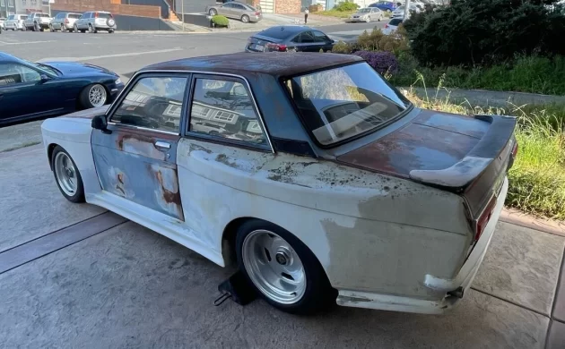 Do you have a car that falls decidedly outside of your usual preferences for a project and somehow keeps hanging on, lingering at the edge of your perspective? That’s the Datsun 510 for me. I really have no desire to go outside my traditional habit of buying 90s/2000s fuel-injected German cars and trucks, but the 510 is one of those vehicles that stops me in my tracks when I see one, likely because it is one of the few cars to ever threaten the granddaddy of sports sedans, the BMW 2002. This one listed here on eBay appears to be a stalled widebody conversion with some other modifications performed.