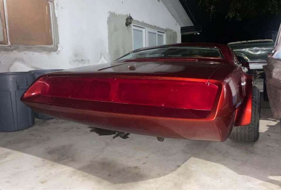The seller doesn’t elaborate on the transformation of this car other than to cite the builder as Dave Migaleto of Sacramento, California. We assume this was a standard ’67 T-Bird hardtop when new, but the roof was lowered and both ends of the auto extended in length, presumably with fiberglass. This work was not done recently but in the early 1970s when the car was fairly new. But watch how you park that thing with its extended nose!