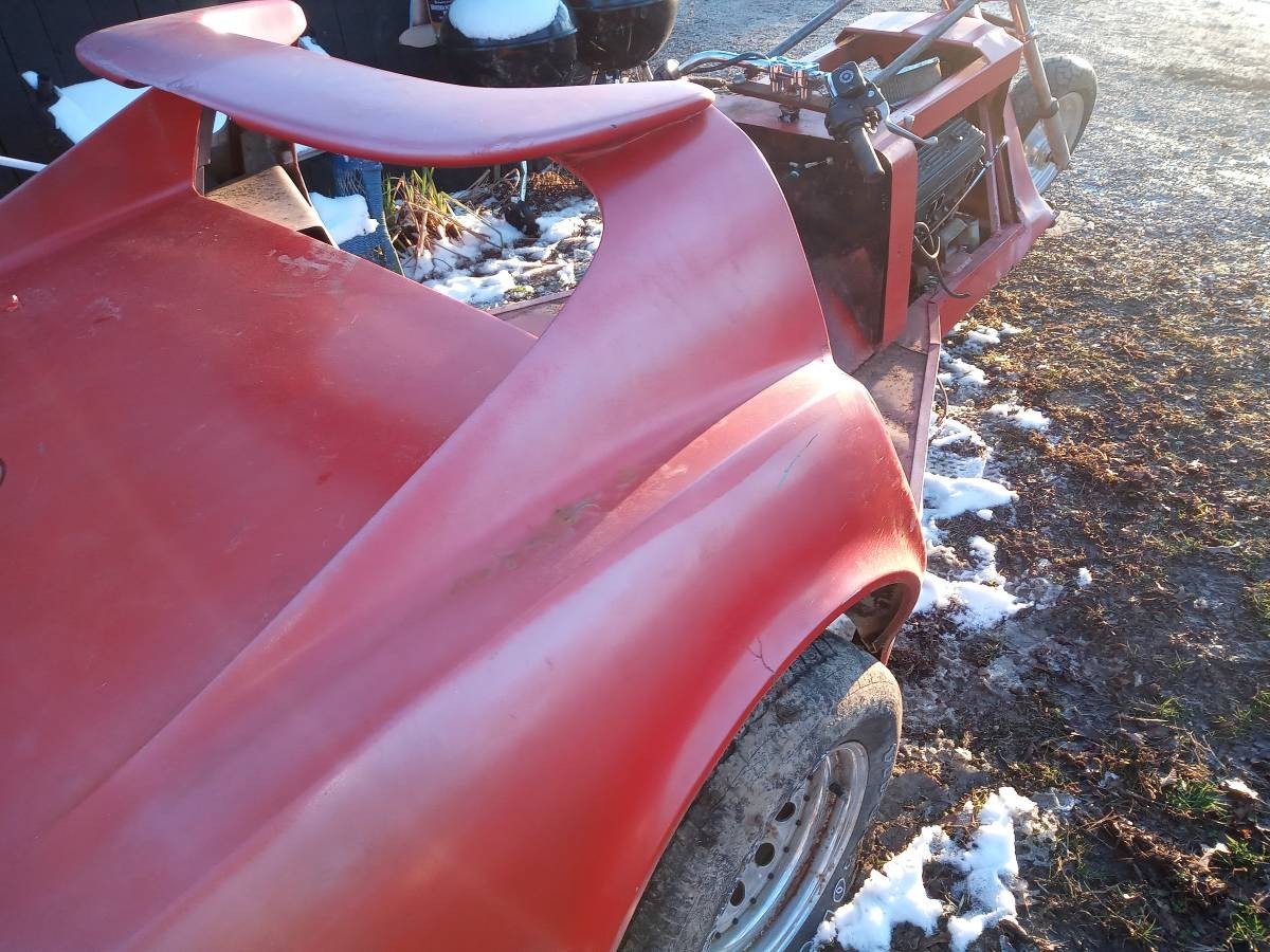 You can see a bit of the joint between the two here. The seller claims to have a clean title for a 1982 Trike although the Corvette part is certainly from an older C3 due to the rear window shape. I’m not really sure where they were going with the spoiler, but what the heck, it’s just more fiberglass, right?