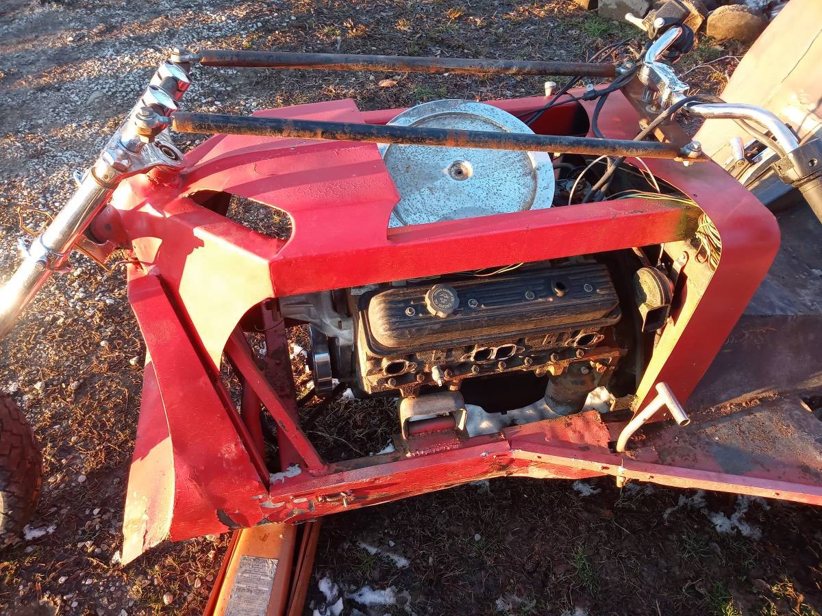 According to the seller, this is the engine from the Corvette, and the transmission and rear-end are still in place as well. The trike is described as a “good project” in the ad. It’s sure a project — I’m curious — any of you want to take this on? Is anyone brave enough to drive/ride it when it’s completed? How fast would you take it?