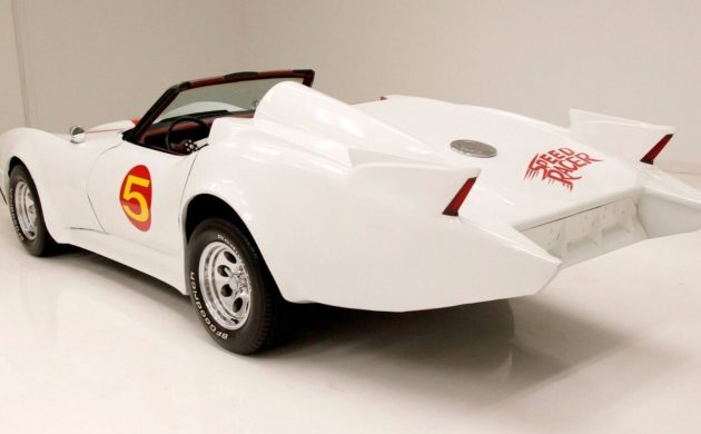 The car carries a salvage title, and mileage is listed at 10,000. The seller offers the car exactly as described: a highly customized 1979 Corvette that’s been reborn as a full-scale Mach 5 tribute.