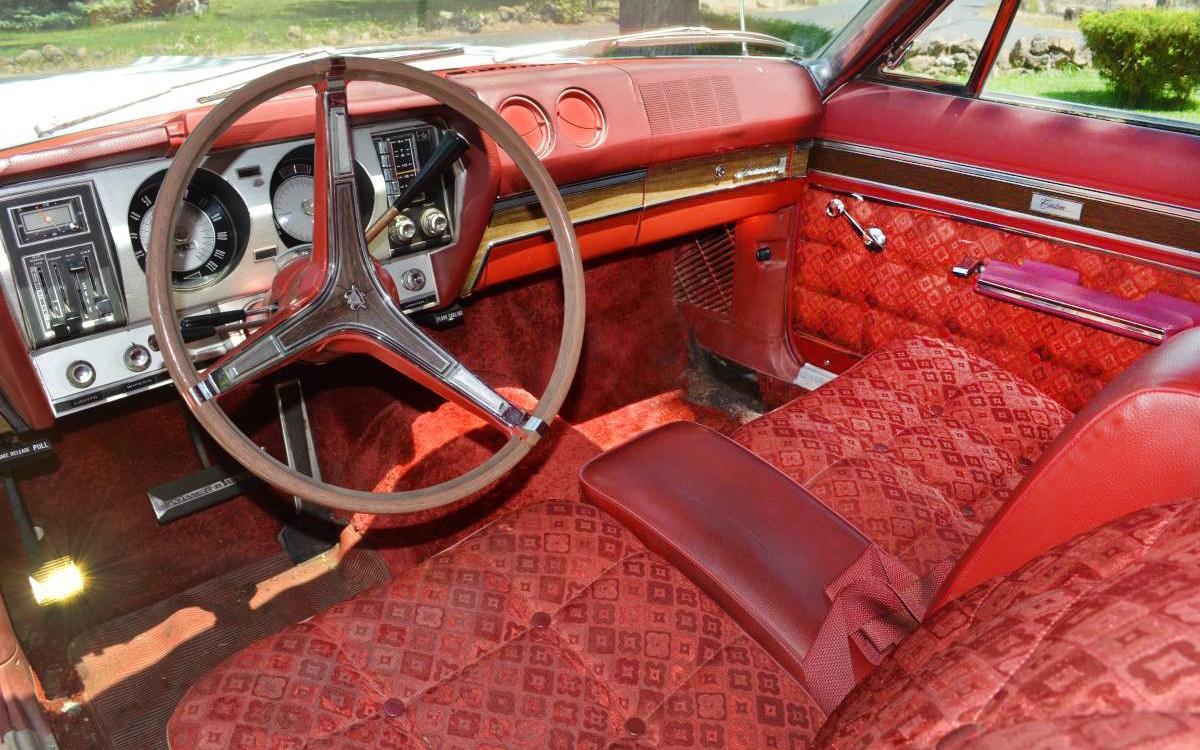 That interior though! AMC had some nice interiors over the years, including some great houndstooth pattern interiors on Ambassador DPLs, but this red brocade fabric is as good as it gets in my world. I’m fairly sure that SMS Auto Fabrics would have replacement fabric to repair the driver’s seat and any other areas. The back seat looks great with the original pillows, but the rear parcel shelf has some issues. I’m not sure if it’s showing rust or rodent damage or what that is, but it might be a chore to find a replacement. The dash crack may be harder to repair.