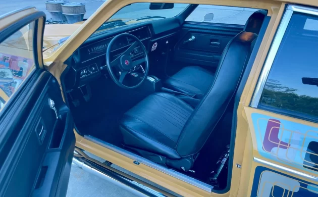 And that’s really why you’d buy this car: the spectacular paint job done on a car that is apparently wearing its factory sheetmetal, a minor miracle when it comes to a first-year Vega, a car that’s been ridiculed for rusting on the dealer lot. Whether you like Vegas or not, you have to admit that the lines of the hatchback are well-deserving of the “mini-Camaro” epithet, and with period Cragar S/S mags and Firestone Wide Ovals on the back, it doesn’t get much better than this if you want a 1970s-style street machine.