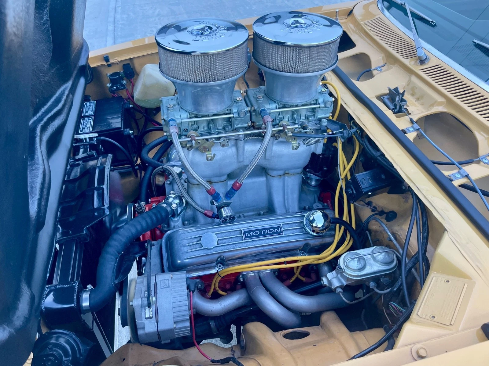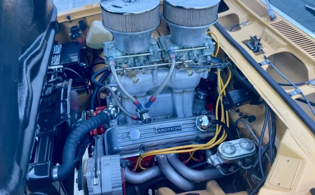 There’s almost too much to talk about, so we’ll start under the hood, where you might have noticed the “Motion” valve covers. Baldwin-Motion Chevrolets were well-known in the late 1960s and early 1970s for being some of the wildest-looking and hottest street machines in the land. The name is derived from a combination of Baldwin Chevrolet (in Baldwin, New York) and Motion Performance (run by famous hot rodder Joel Rosen), and they created supercars that were ready to hit the strip, and they even guaranteed that their cars would run a certain quarter-mile time (depending on the package). This is not a Motion car, but it was V8 swapped years ago using a kit from that well-respected outfit. The engine in the Vega is a 350 with all the goodies you might expect: ported heads, roller cam, tunnel-ram intake manifold, dual Holley 600s, MSD ignition, and custom headers. There’s also an aluminum radiator, and during the 2025 show season, “it was driven every weekend and ran smoothly locally and on the highway at 180 degrees.”