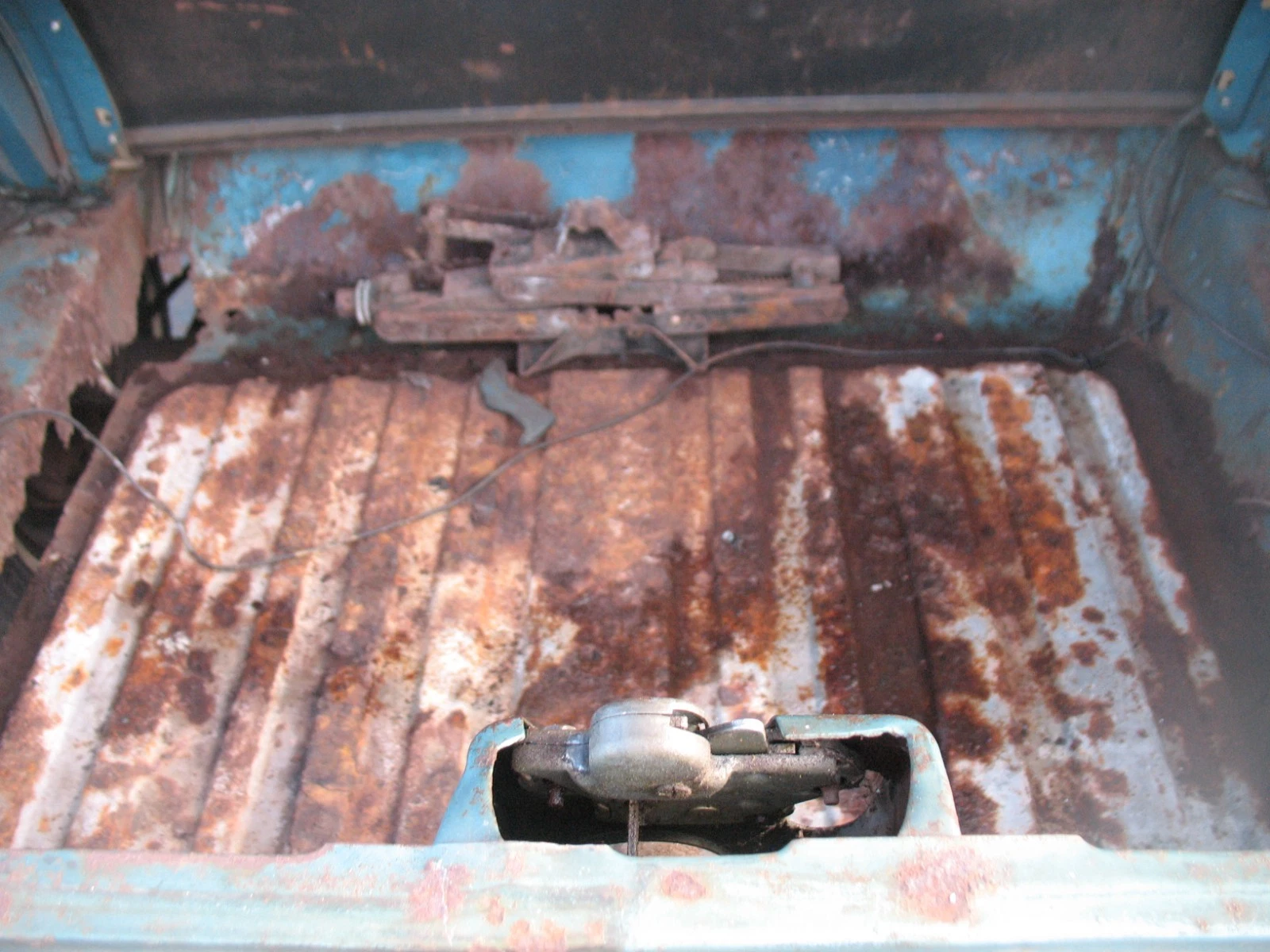This interior shot reveals the A-pillar problems previously mentioned and the gaping hole where the passenger-side floor pan should be. It also suggests that the interior is seemingly complete, and that some of the Black vinyl surfaces are potentially salvageable. I’m unwilling to bet the farm on that, but it looks promising. Of course, given the cost this build could incur, the expense of a complete retrim to achieve flawless presentation probably wouldn’t phase many potential buyers. Interestingly, this Mustang retains its factory AM radio/8-track player, adding to this car’s appeal.