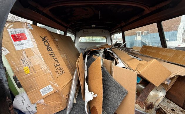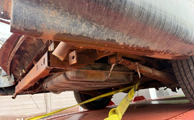Says the seller, “This car will need a full restoration, [including] floors, engine, transmission, paint, interior. However, included is a NEW-in-the-box windshield. The wheels have been restored, and powder coated with new tires have been installed.” The missing chrome is part of the deal, though it’s unrestored. That’s the good part, but there’s no engine or transmission included in the sale. Now, this is a project. “You may need two transports for the car (being over 20 feet long) and all of the parts that go with it. So be prepared for that.”