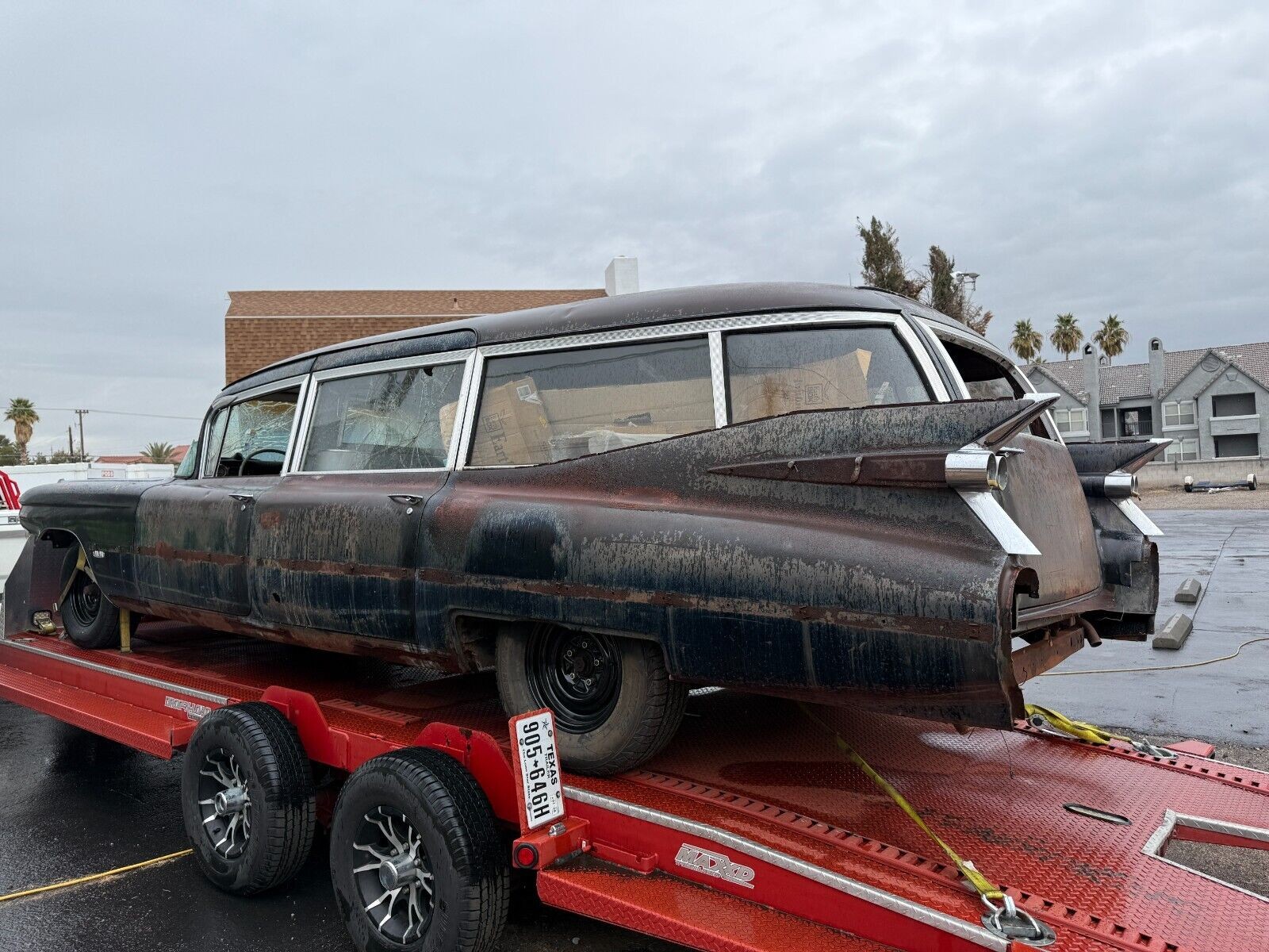 I’d love to see it driving with the body left as is. It looks the creepy funeral part. Wonder what the actual desired price is. I’ve seen running driving projects of these for $20k, and rough ones for half that. This looks way worse than those. It’s the specific year for the movie car, but I don’t think that adds that much value in its condition.
