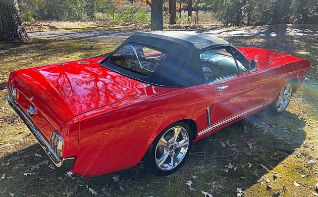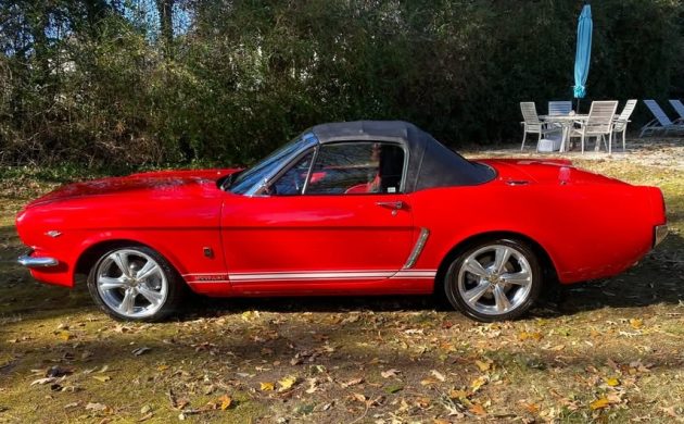I think that yes, the proportions are off. But, it is well done and this is a car that you most likely will drove with the top down anyway. Providing that the weight has not been too badly compromised, I think it is a cool daily driver. There are tons of engine and suspension goodies for the Miata. And the Miata is a great car! So a mix of great and iconic, in my book is not a bad thing. And if the weight has not been compromised, there is no way a stock ’65 Mustang would be able to keep up with this in the “twisties”!