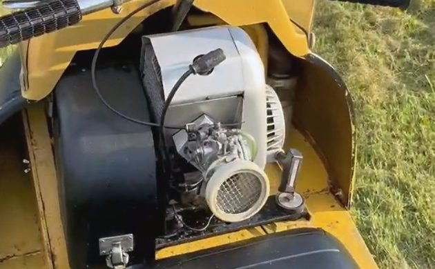 The company offered these unusual ASVs in 1971 and 1972, and after that, the company declared bankruptcy. The ASV part (wheels, etc.) added about 100 pounds and it’s powered by a 16.5-hp single-cylinder, and sold for around $750 new. The seller says it runs good and everything “pretty much works,” but I’m not quite sure what that means. Does it have the original skis for the front? We don’t know, but I’d hope so. There’s no mention of it, and they may be hard to find. Have any of you heard of the Sno-Pony?