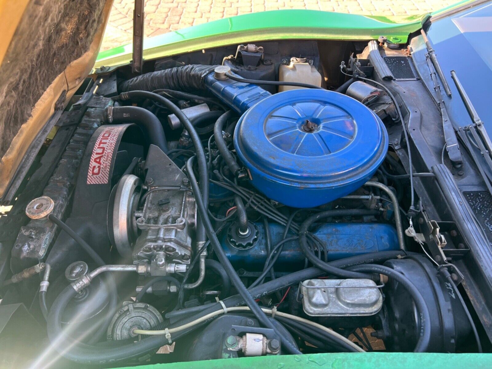 It just so happens that the seller was passing through Mr. Irwin’s neighborhood and saw the two Bricklins in his open garage. A deal was soon struck, and both cars were shipped to Nevada without delay. Since arriving in their new temporary home, the 35,000-mile green car you see here has been brought back to life. The 351 Ford engine runs fine, and the transmission shifts as it should. The brake system will need tending to, and a set of tires should be put on the car without delay.