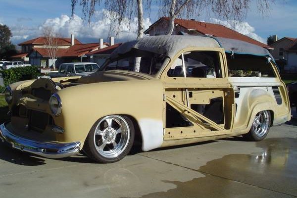 The seller indicates that there are all new wood panels with maple frames and African mahogany inserts. The car also includes the following: Fatman front end with Mustang components, lowered 5″ all around, Painless wiring harness, Billet Specialties wheels, Camaro steering column, re-chromed bumpers and grille, fully powder coated frame, rear end housing and suspension components, Lokar shifter and HP racing mufflers.