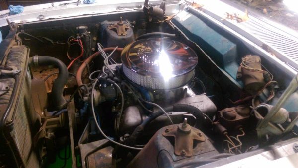 Under the hood, we see more evidence that the white exterior color may not be factory original. Overspray appears on the rubber hood stops and seems to have drifted into other areas. As for the engine, the owner has replaced the carburetor and intake manifold, and has done some other freshening to get it back in running order. He did keep the original carburetor and intake manifold, so returning it to factory original shouldn’t be a problem. It would be nice to know what size engine is resting under the hood, but we aren’t in the know on that. Some more details could go a long way in selling this car.