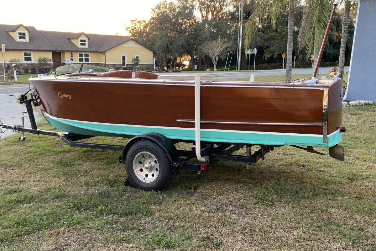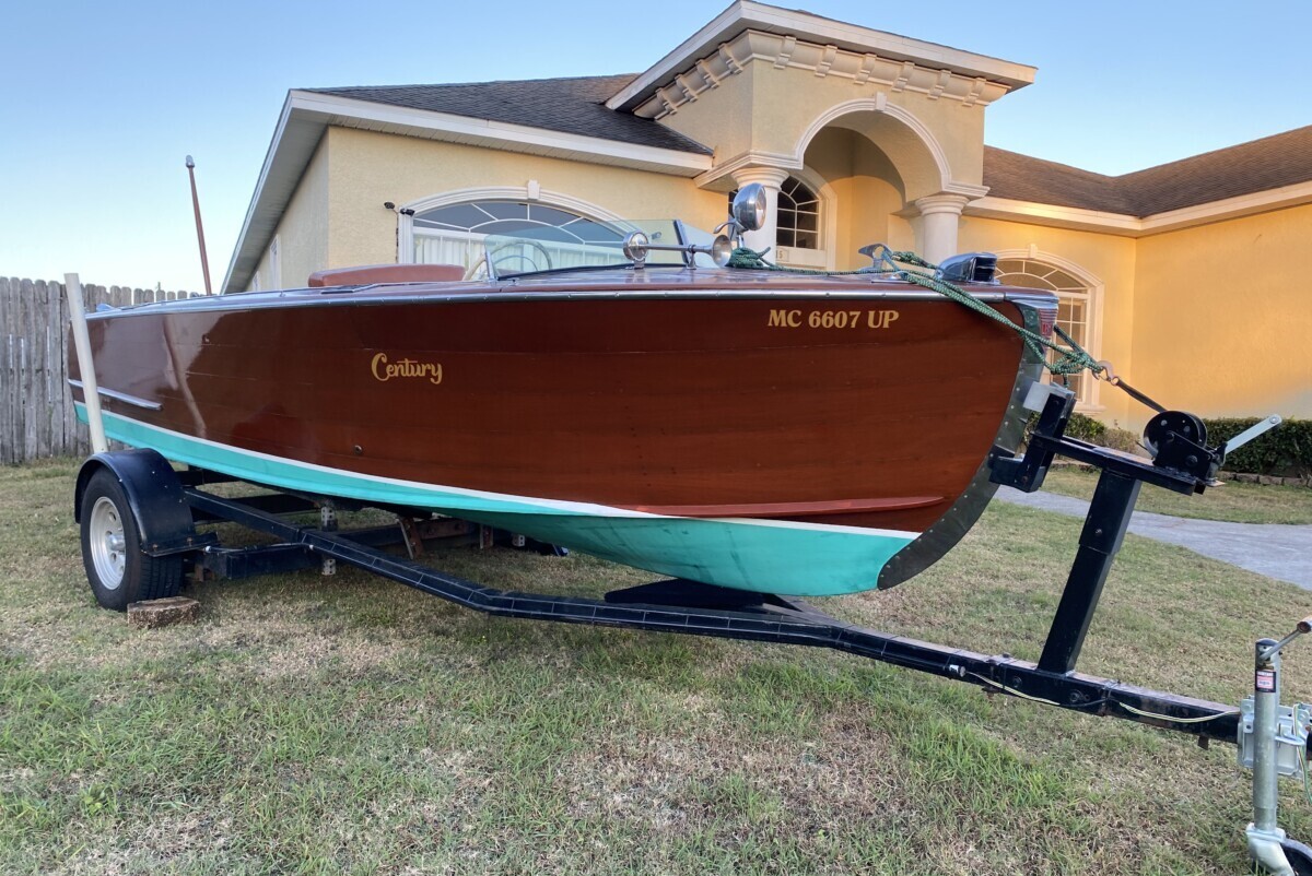 These Century’s are beautiful boats. This one appears to have had the bottom Fiberglassed. Witch is a mixed bag. But for this boat is a smart move. This is a fantastic user boat and plopping a small block in it is the way to go. No need to be original on this. Heck, even a used Small block, paint it red like Grey marine did and go boating. One note. Century boats of this era were NOT double planked. So bottom issues are its weakness. Hence the Fiberglass. I know people say thats a bad thing because it can promote rot. But I own several that have been glassed and they are great. So? Unless its a show boat, and this isnt. HAVE FUN! This is a perfect boat to get into the hobby with.