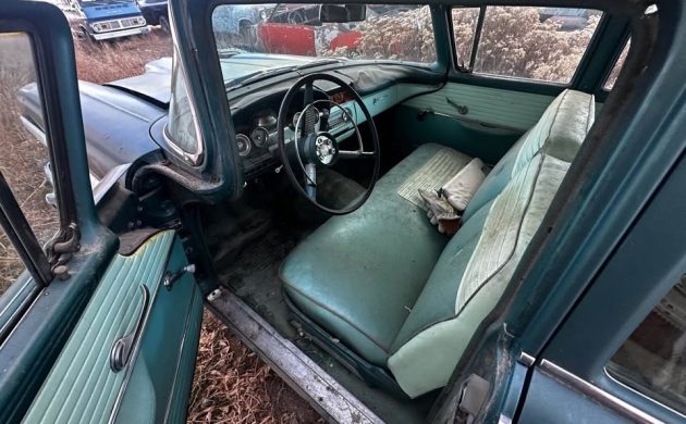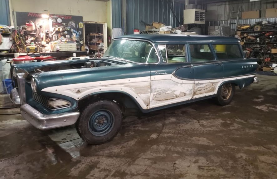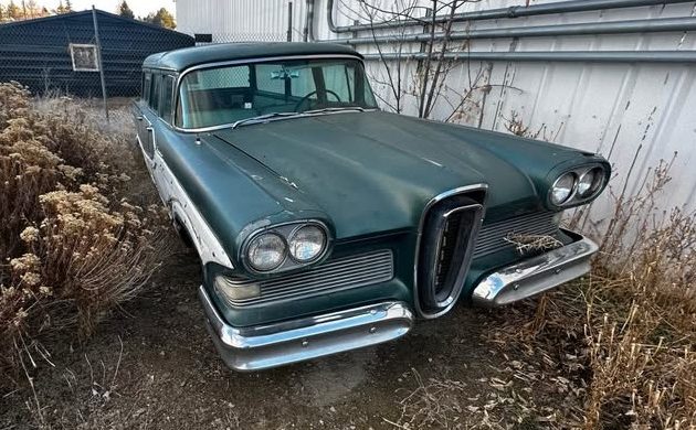 The interior may be in fairly good shape, but the body is likely subject to more rust than we can see due to it being stored outside for part of the time. We have no idea how much trouble you’ll have finding and replacing the fake wood paneling that harkens back to the days of the true woodie a decade earlier. If you’re into wagons, you might be the only kid on your block to have an Edsel in your arsenal.