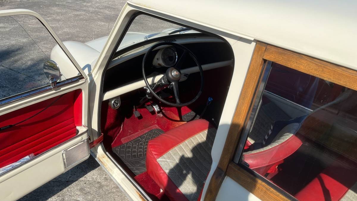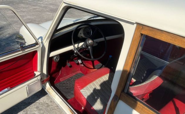 The interior is claimed to be original, and the seller adds, “not bad, but showing its age (63 years old!)” The two interior images aren’t very revealing, but what can be spied shows well. The upholstery appears to be a vinyl and cloth combination, and its two-tone red and white combination works well with this car’s exterior. It would have been nice to get a glance at the cargo area – that’s the part of a station wagon that usually takes the most abuse.