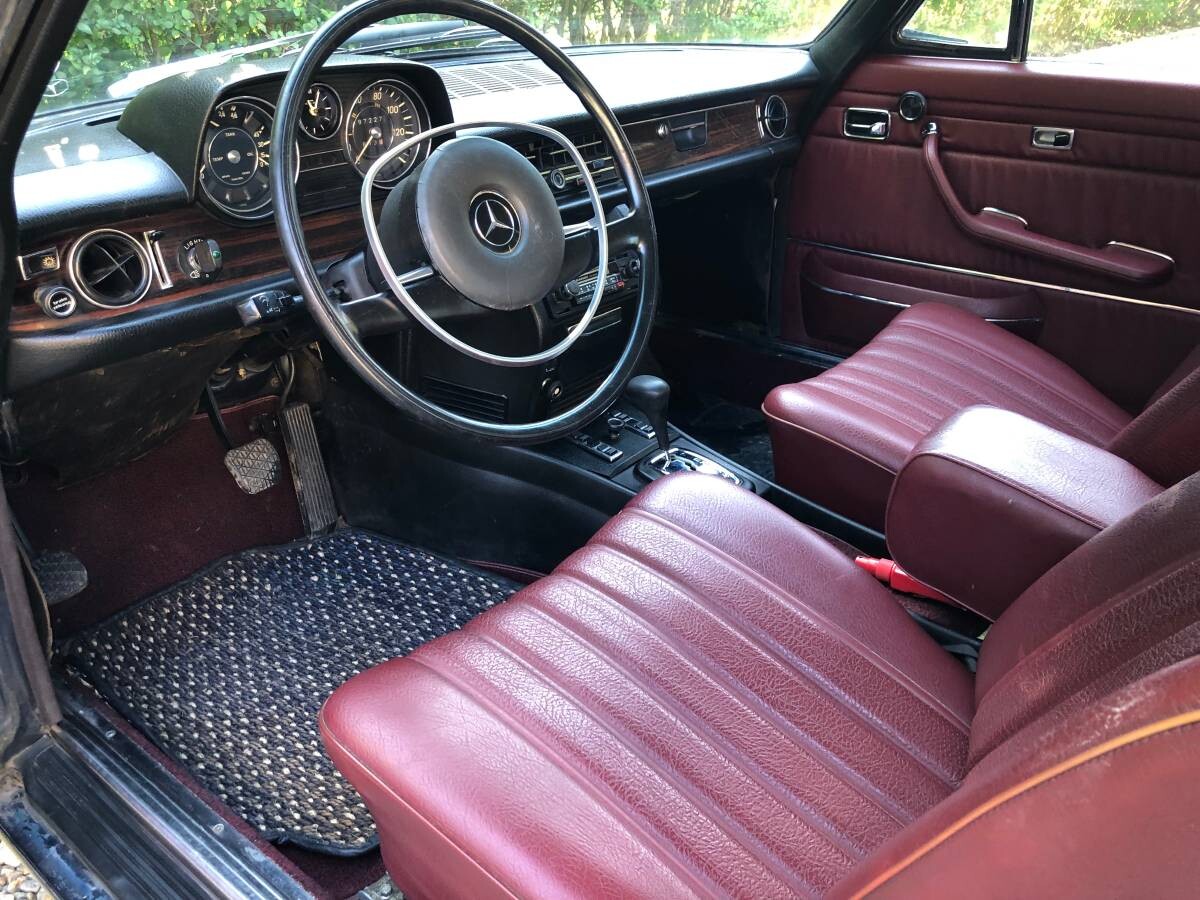 The 2 door W114 and W115 have really nice lines that carried through to the W123 chassis and beyond. For whatever reason Mercedes slit the chassis number to denote the powertrain. The W114 was the gas variant and the W115 were diesel variants. Rarely seen are the 280E cars which denoted fuel injection. The seller is asking strong money for a car in need of paint. And I would go over the car carefully for hidden rust as you would with any old car and ones especially around the rust belt of the country.