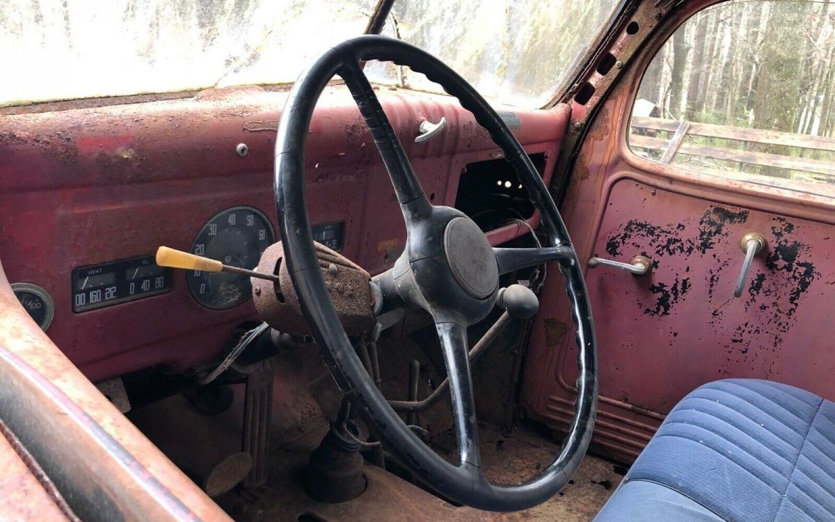 As you can see, this truck is pretty rusty and crusty but appears solid overall. The ad doesn’t have a ton of information, but it does say it’s “ruff” and needs a complete restoration. There is no photo of the engine compartment, but the drivetrain is complete although not running. The tires are said to be good and have a nice aggressive military-style tread pattern.