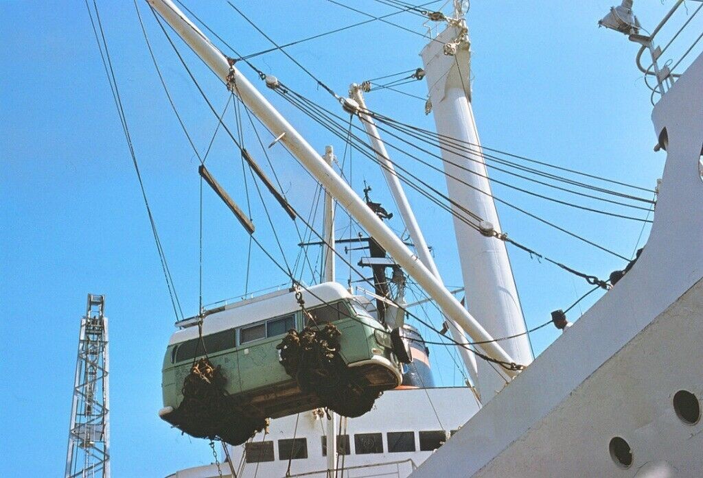 What a history this bus has ! That picture of the bus being loaded up on the ship brought back memories for me – in the summer of 1967 we went to England on the Queen Elizabeth .I remember looking out over the docks and saw a red and white VW bus being loaded onto another liner .For a little kid ,seeing that bus hoisted up in the air and loaded into a ship was the coolest thing ,and unfortunately, its one of the few things I remember of that trip !