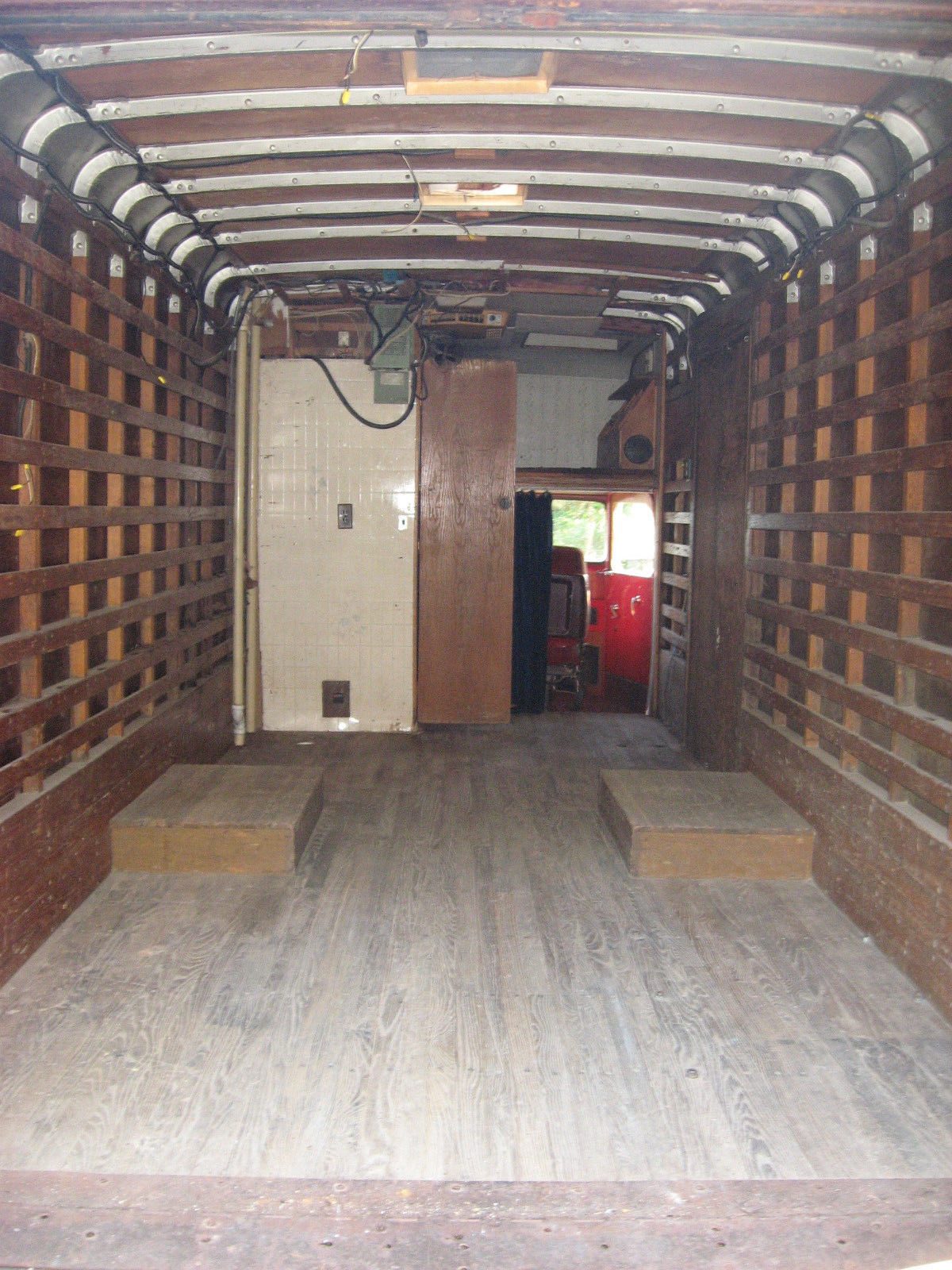 The “Stanley Cabinets” artwork is a cool touch. It all looks pretty solid except for the rust in places along the bottom of the box. It’s hard for me to imagine who would be willing to pay a huge amount of money for it given it’s condition. It is going to take some work just to get it running again. The brakes were redone by a shop that is out of business now and have failed. Redoing work done poorly or incorrectly could get very expensive. The engine might need to be rebuilt or replaced. It would take a lot of work but this could be the perfect car hauler, complete with bunk room, tool room, and perhaps even a little shop. It could also be converted back to an RV. It will be interesting to see what uses you see for this old van.