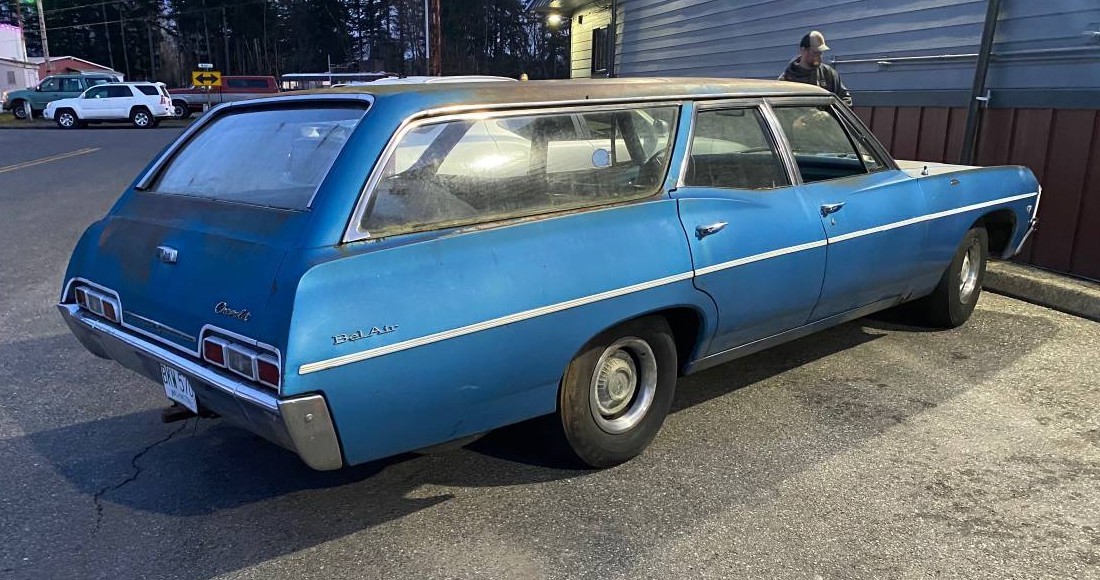 The Bel Air was a staple of the Chevrolet lineup for more than 30 years (1950 to 1981). It was replaced as the top full-size Chevy car by the Impala in 1959, repositioned as the mid-level offering above the Biscayne. This Bel Air is a station wagon from 1967 that runs and drives but needs an extreme cosmetic makeover. It begs the question of whether a restoration can be justified at $7,500 here on craigslist from its current perch in Lynden, Washington. Kudos to Mitchell G. for more of his sleuthing for tips like this!